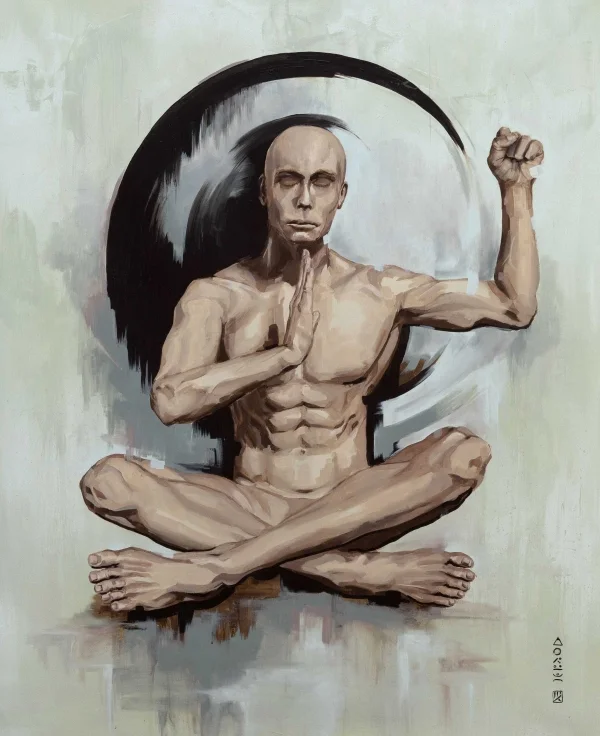 My art blends Eastern and Western perspectives—drawing from Buddhism, science, and human experience—to weave spirituality, energy, and emotion into contemporary form. It’s not about perfection, but exploration, mixing bold styles with symbols. This fusion seeks tranquility amid chaos, creating paintings that resonate with depth and feeling.